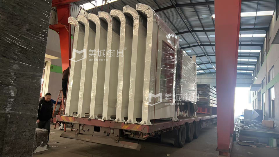 江蘇美城街具供應(yīng)新疆第七批候車亭公交站臺發(fā)貨案例,以下是候車亭站臺發(fā)貨現(xiàn)場圖: