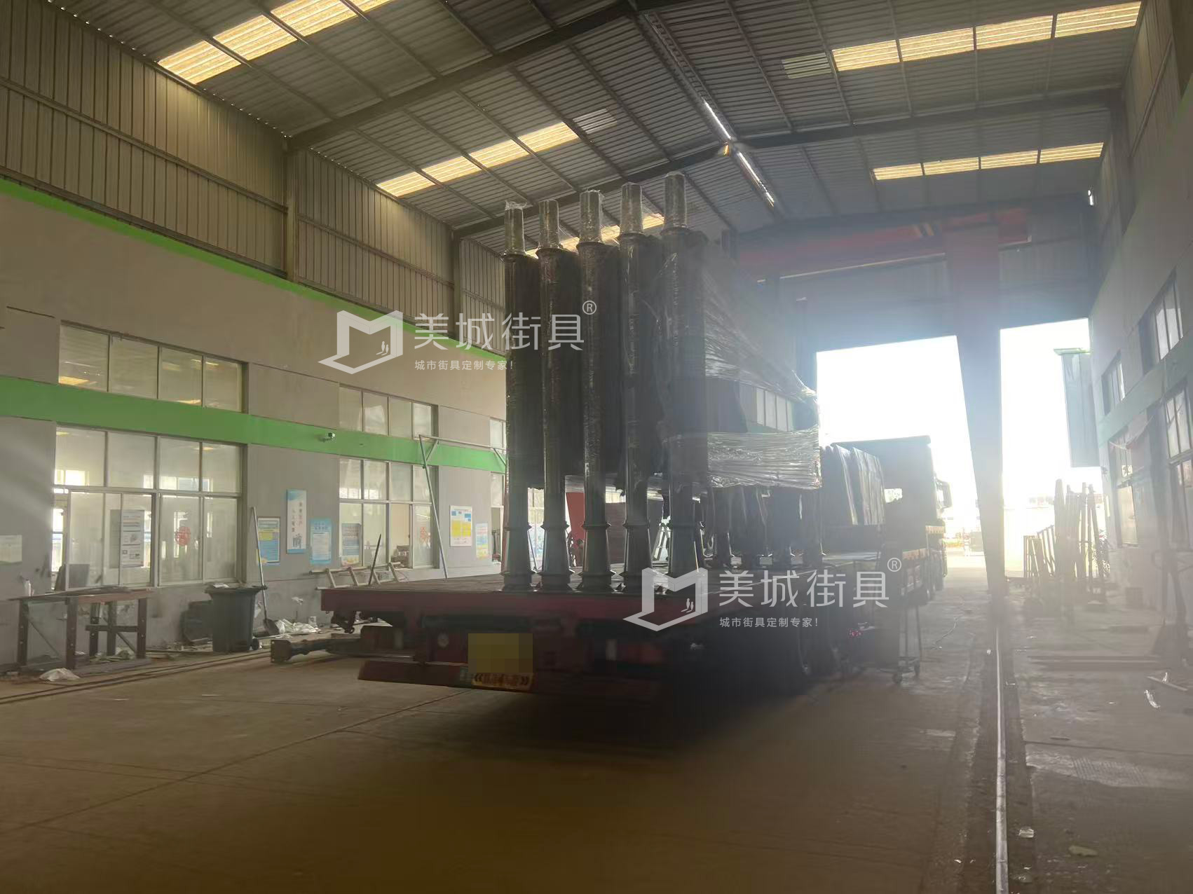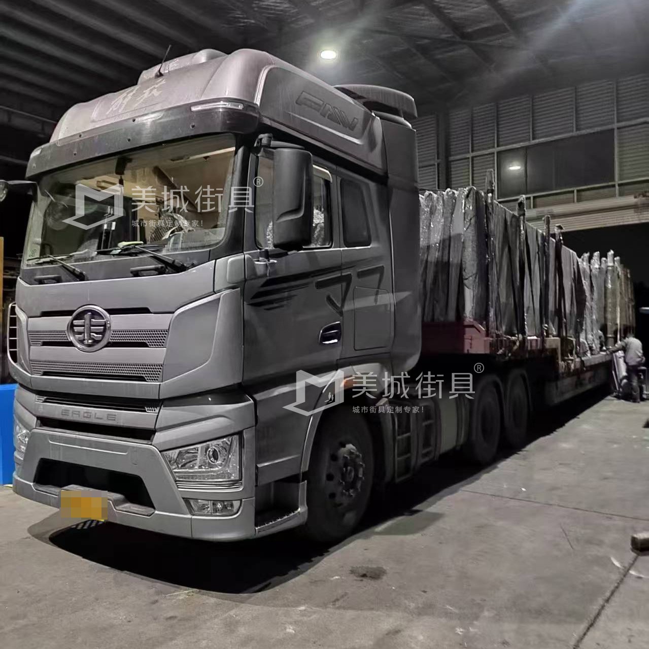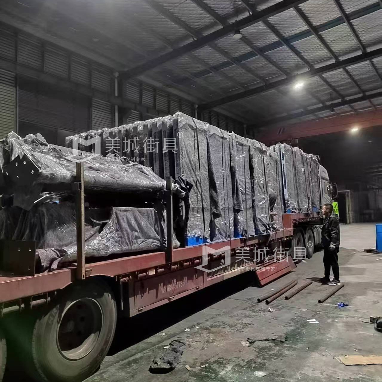江蘇美城街具為新疆定制公交候車亭第五車發(fā)貨案例